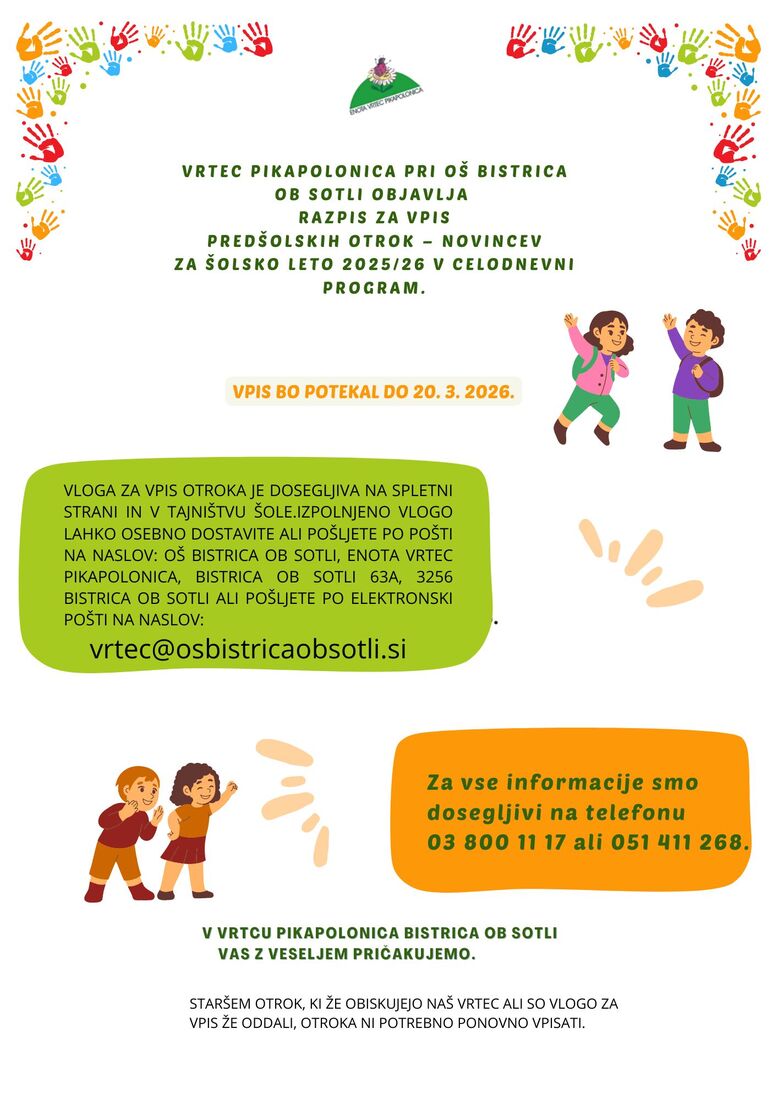 Razpis za vpis predšolskih otrok – novincev